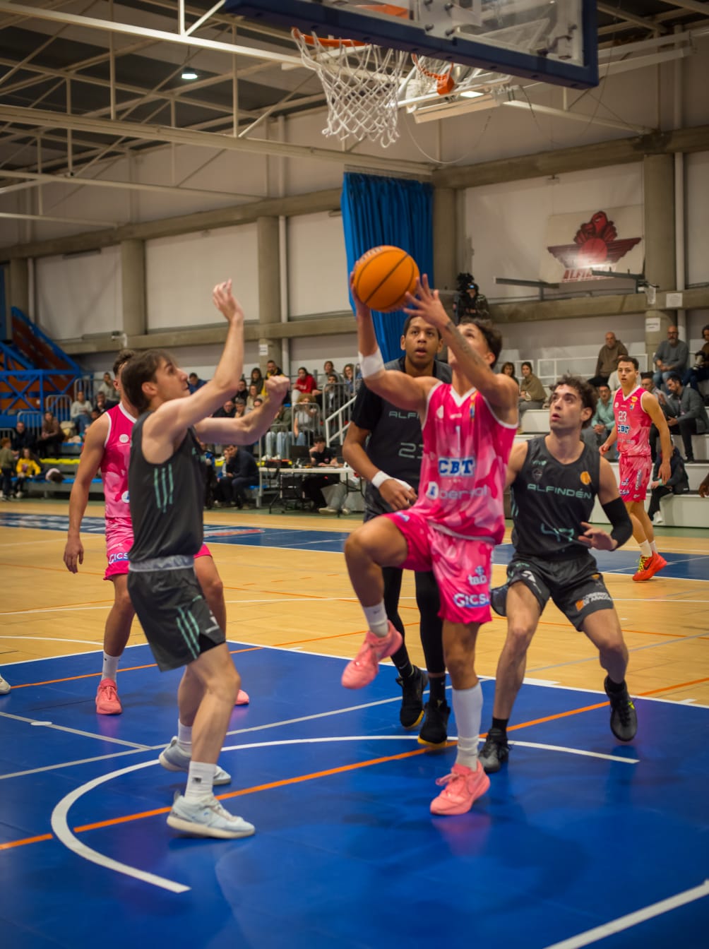 A l’inici del segon període, els aragonesos van aprofitar els minuts de desconnexió visitant per acostar-se (22-23). Però la parella Buscail–Iker va tornar a aparèixer per completar un parcial de 0-8 i recuperar el control (22-31). L’Alfindén va respondre amb energia i va tornar a escurçar la distància abans del descans, al qual s’hi arribava amb un ajustat 34-38.